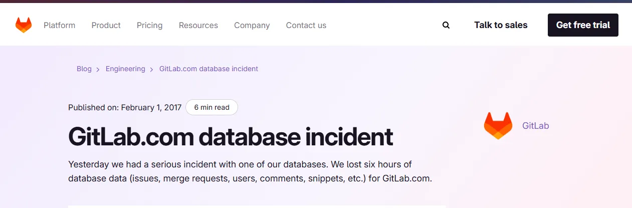 In 2017, a GitLab engineer accidentally deleted a primary database, wiping out six hours of customer data in an instant. For most companies, this is a "contain and control" PR disaster, lock the doors, lawyer up, craft the statement.