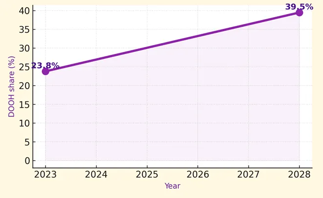 DOOH’s evolution continues, growing from 23.8% of OOH revenue in 2023 to an expected 39.5% by 2028.