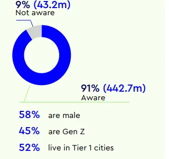 Awareness of quick commerce services is high, with 91% of internet users familiar with them, and over half having purchased in the week preceding the survey.