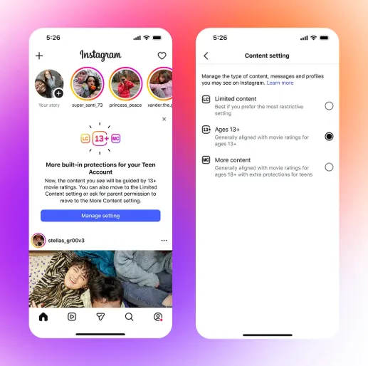 - Announced that all teen accounts will now default to a PG-13 content setting, meaning teens will see material comparable to what is allowed in a PG-13 movie.