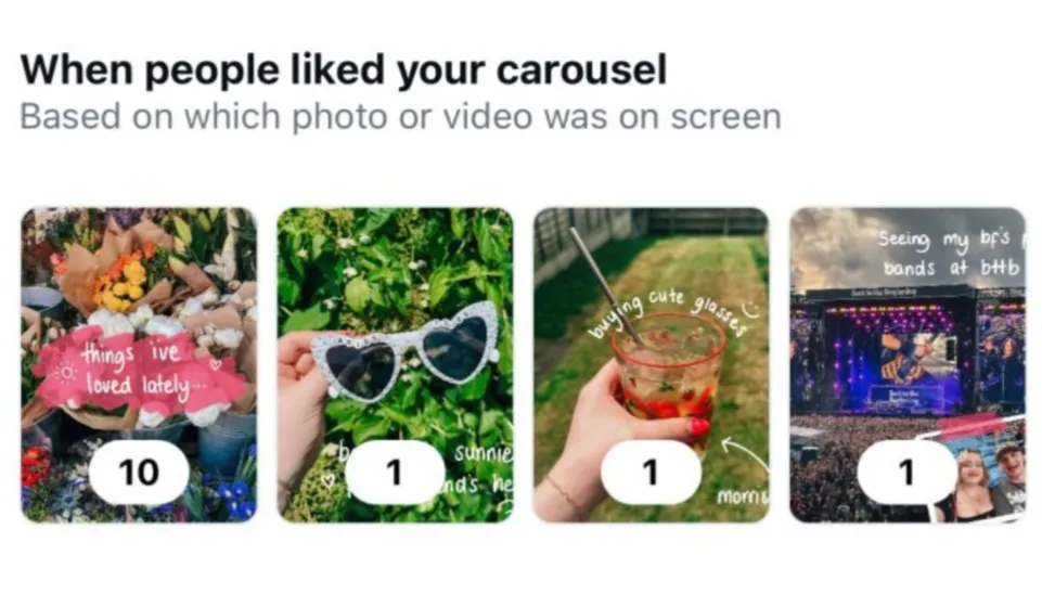 - The platform began testing new carousel-like insights, allowing some users to see which frame in their carousel received likes.