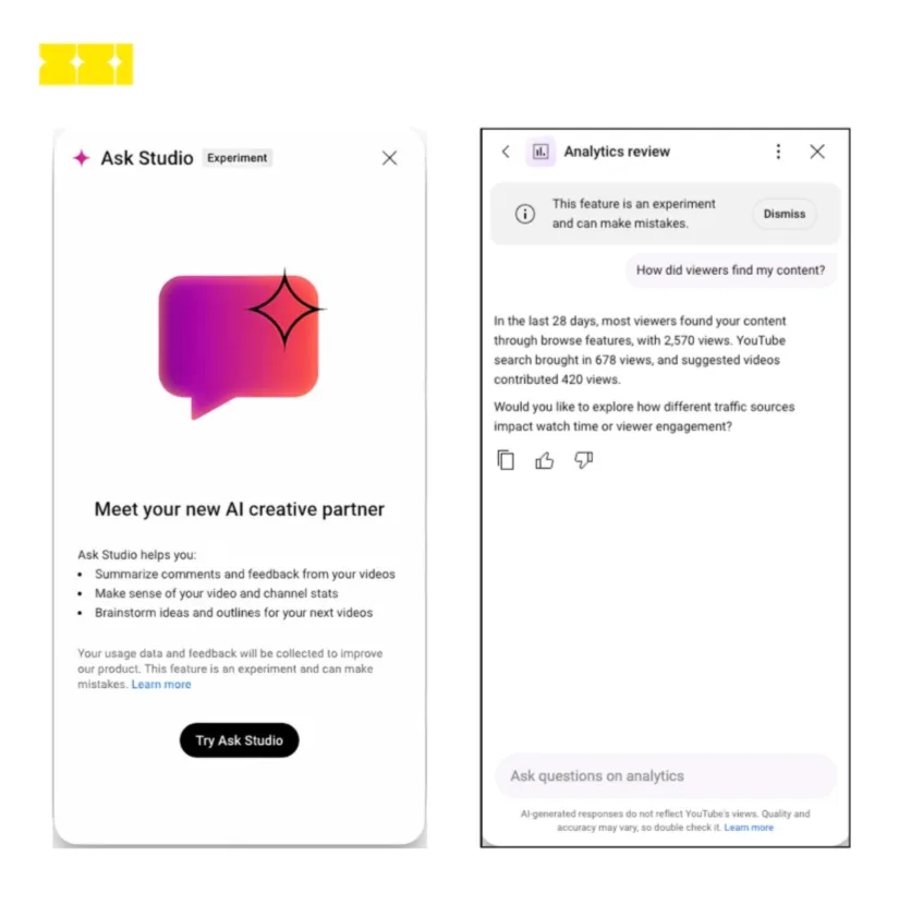 - YouTube began experimenting with Ask Studio, a tool designed to summarise comments, analyse channel performance data, and help creators brainstorm content ideas.