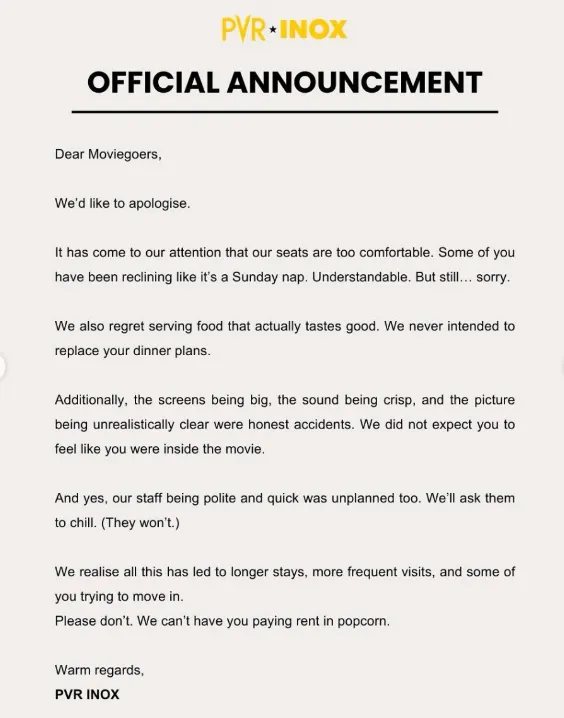 The latest manifestation of this is the ‘Official Apology Letter’ trend, where brands are posting mock apology letters, using a formal tone and official letterhead, but the punchline is a tongue-in-cheek apology for their products or services being ‘too good’ or ‘irresistible.’ This clever twist transforms a typical crisis communication format into a self-aware, humorous brand endorsement.